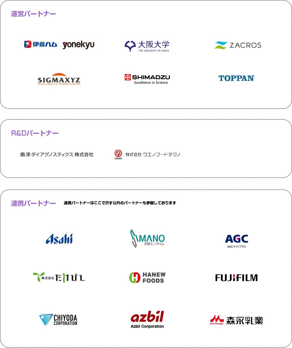 現在のコンソーシアム参画組織は、運営パートナーとしては、前述の6社(伊藤ハム米久ホールディングス、国立大学法人 大阪大学、ZACROS株式会社、株式会社シグマクシス・ホールディングス、株式会社 島津製作所、TOPPAN株式会社)が参画しており、その他にR&Dパートナー、連携パートナーとして12社参画しております。(運営パートナー含め18社、2025年6月時点)