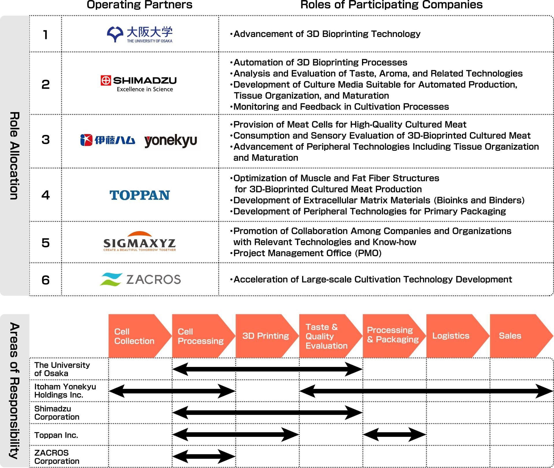 On March 29, 2023, the Graduate School of Engineering at Osaka University (hereinafter referred to as "Osaka University"), Shimadzu Corporation (hereinafter referred to as "Shimadzu"), Itoham Yonekyu Holdings Inc. (hereinafter referred to as "Itoham Yonekyu"), Toppan Printing Co., Ltd. (now TOPPAN Holdings Inc.; hereinafter referred to as "TOPPAN"), and SIGMAXYZ Inc. (hereinafter referred to as "SIGMAXYZ") established the "Consortium for Future Innovation by Cultured Meat." Subsequently, on May 8, 2024, ZACROS Corporation joined the initiative. The consortium is now being driven forward with six core member companies.