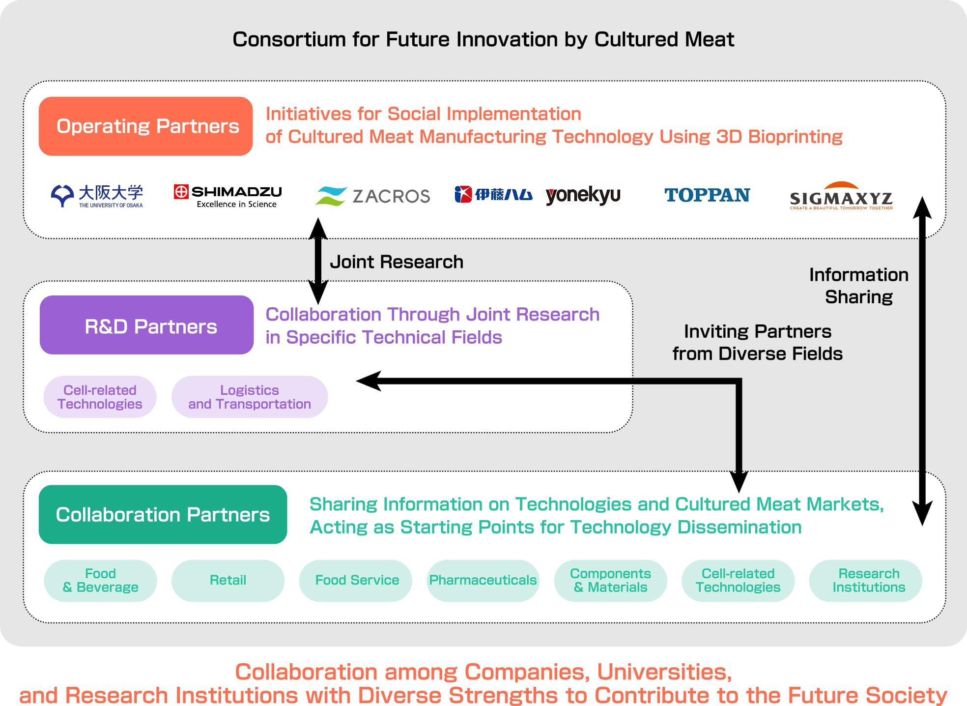 On March 29, 2023, the Graduate School of Engineering at Osaka University (hereinafter referred to as "Osaka University"), Shimadzu Corporation (hereinafter referred to as "Shimadzu"), Itoham Yonekyu Holdings Inc. (hereinafter referred to as "Itoham Yonekyu"), Toppan Printing Co., Ltd. (now TOPPAN Holdings Inc.; hereinafter referred to as "TOPPAN"), and SIGMAXYZ Inc. (hereinafter referred to as "SIGMAXYZ") established the "Consortium for Future Innovation by Cultured Meat." Subsequently, on May 8, 2024, ZACROS Corporation joined the initiative. The consortium is now being driven forward with six core member companies.